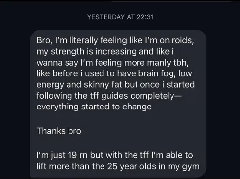 TFF 2.0 (Testosterone For Free) isn't another cookie-cutter program. It's a complete testosterone optimization system built on the ONE pillar 99% of men completely ignore: Gut Optimization.