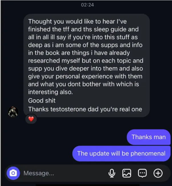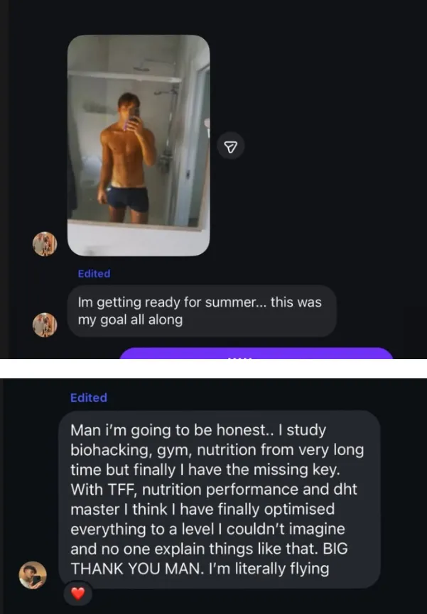 Follow the TFF Method for 30 days. If you don't see improvements in energy, sleep, focus, libido, or performance—email us at [email protected] with what you tried, and we'll refund 100% of your purchase.